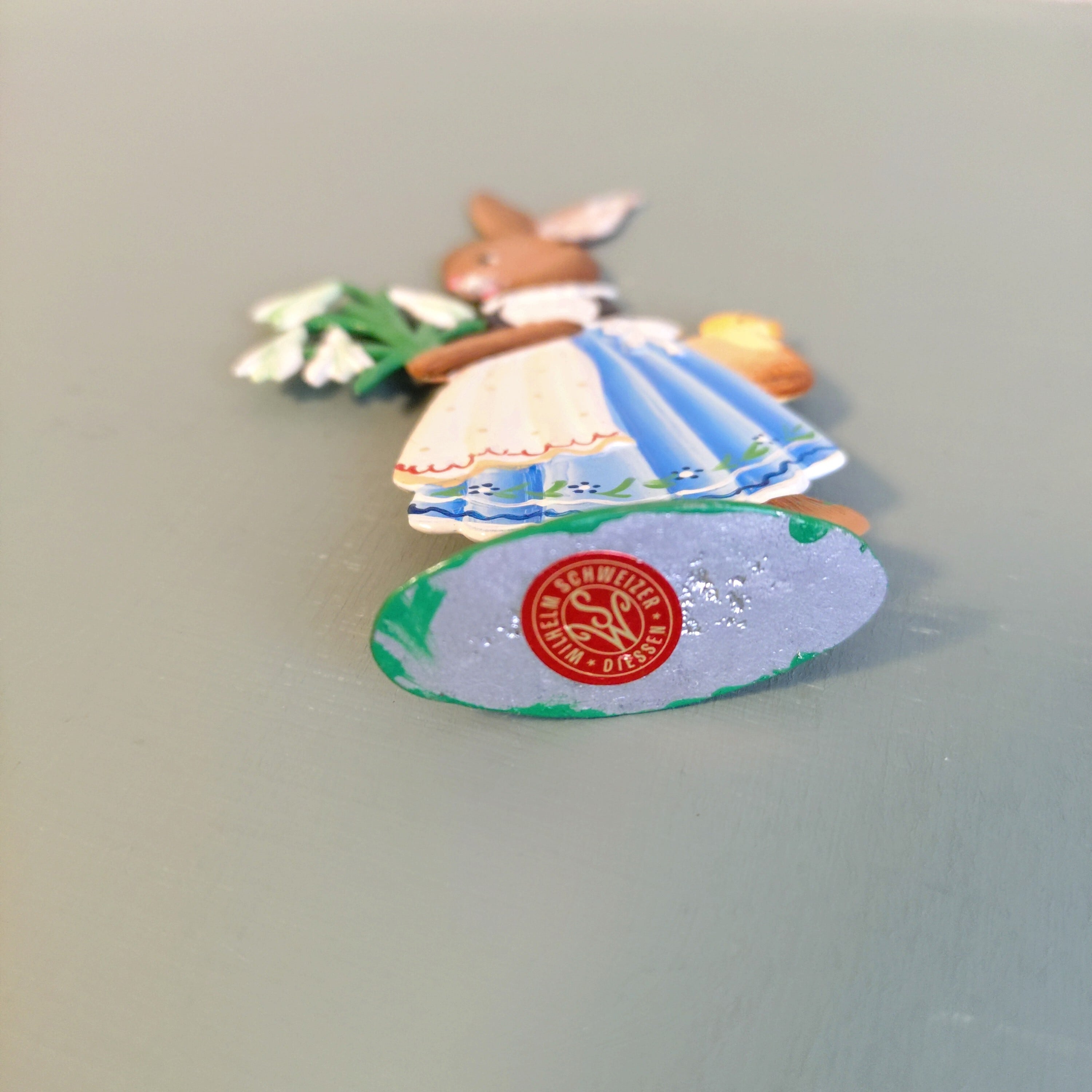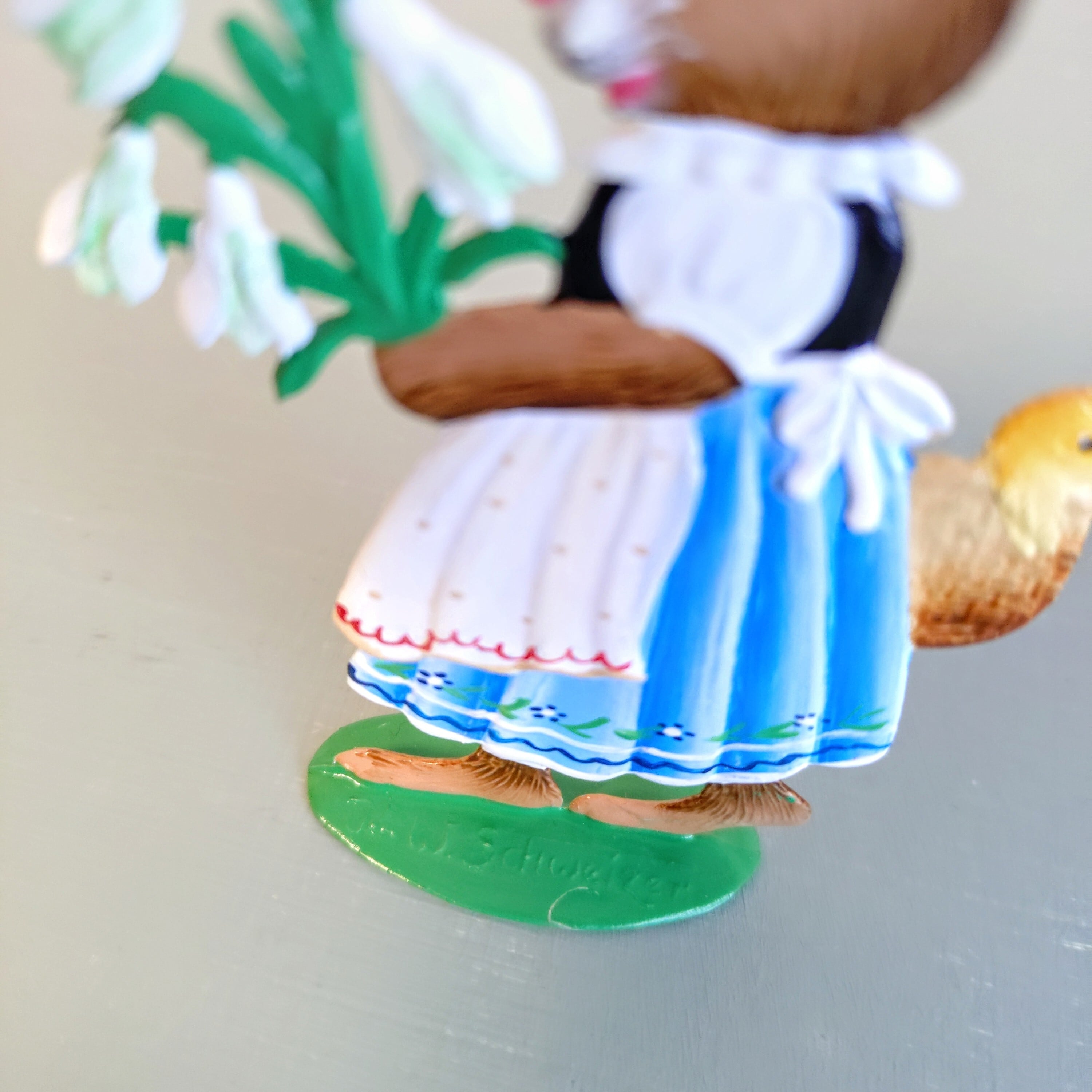 丁寧にハンドペイントされたお洋服の、可愛いウサギの女の子。
