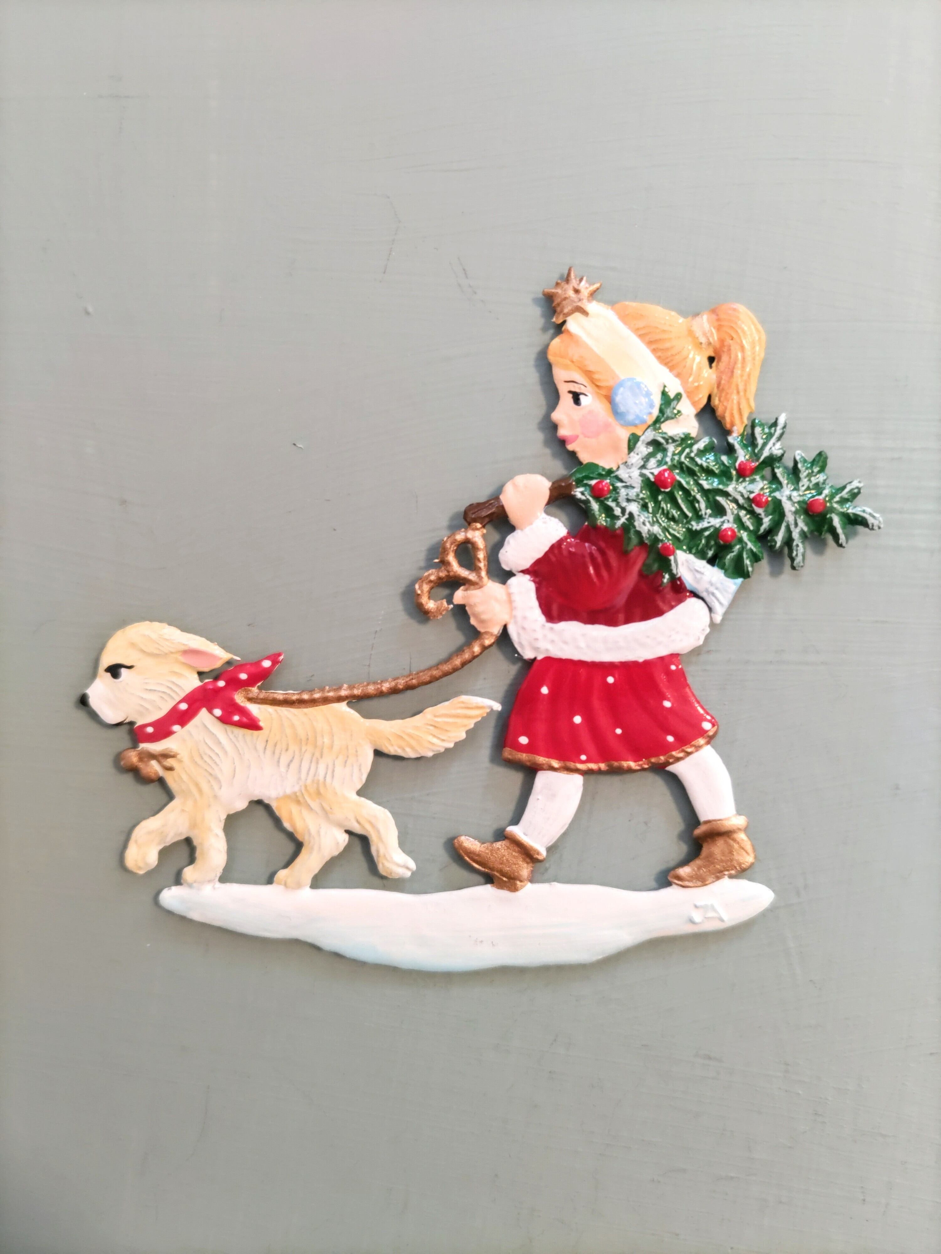 犬の散歩をする天使A 錫飾り オーナメント