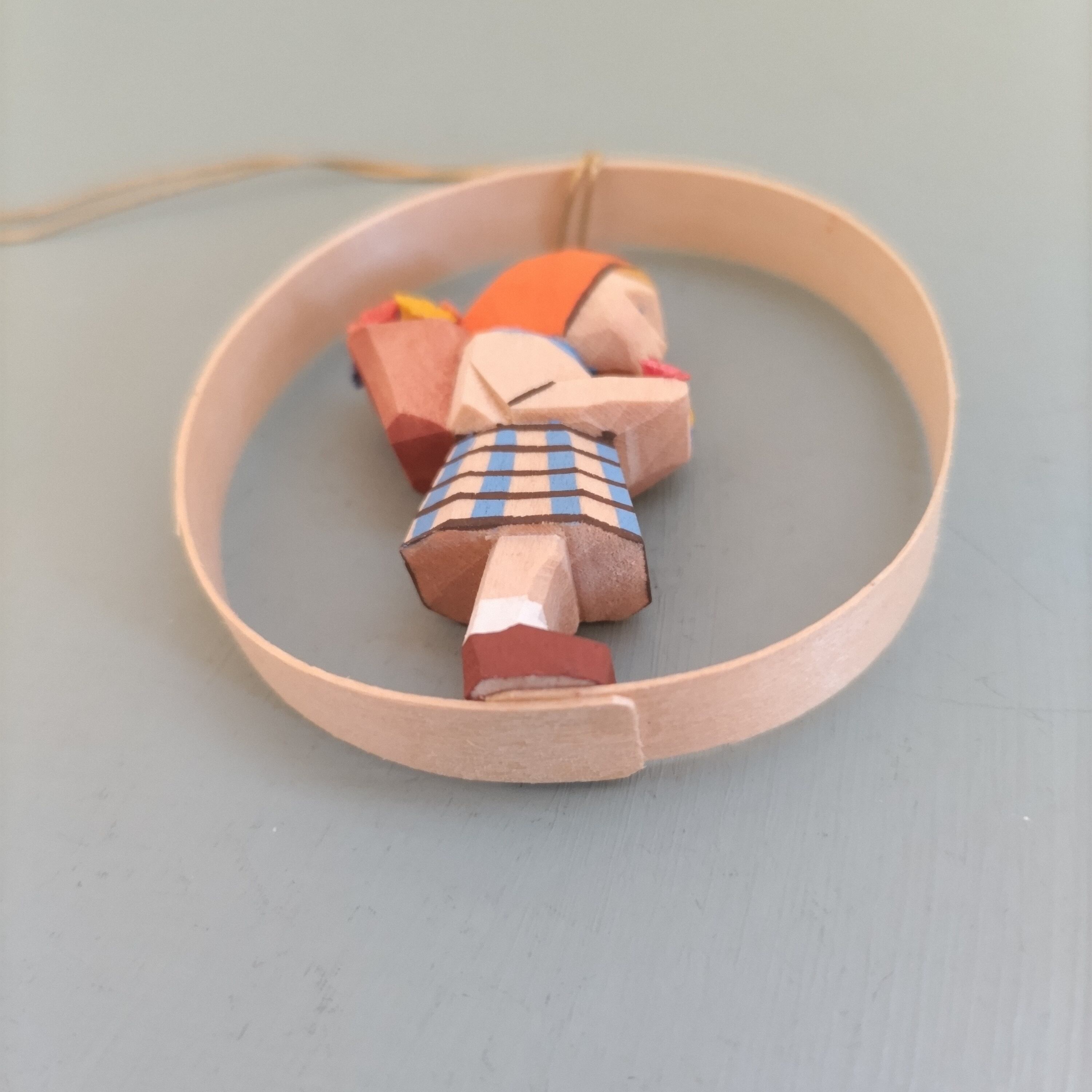 周りの輪っかはわっぱを曲げており、歪ですが、ハンドペイント、接着など、ハンドメイドのご理解の程、よろしくお願い致します。